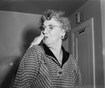 Mrs. C. A. Stevenson, shown posing with her parakeet. Published in Fort Worth Star-Telegram morning edition January 17, 1954.