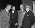 Spencer Harris of Cats, John Reeves, Bonneau Peters of Shreveport and J. Walter Morris confer at Texas League meeting after Reeves' election as president and announcement that league offices would move to Fort Worth. Morris was last Texas League head to operate the office from here. Published in Fort Worth Star-Telegram evening January 11, 1954.