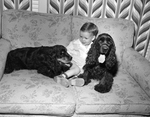 Charles Edwin Smith II, son of Mr. and Mrs. Charles E. Smith, 3324 Meadowbrook Drive, is a little young to show cockers, Lee and Dusty, in the Lone Star Cocker Spaniel Club's show. Published in Fort Worth Star-Telegram morning edition May 14, 1950.