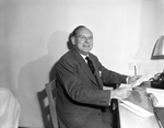 Reverend Sidney Powell, pastor of the Tremont Temple Baptist Church in Boston, Mass. will speak at the State Baptist Evangelistic Convention. He is shown at his desk. Published in Fort Worth Star-Telegram morning January 13, 1954.