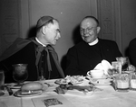 Bishop Gorman, left, chats with Reverend Felix S. Childs of Fall River, at a public banquet at Hotel Texas. The bishop and Father Childs were roommates at St. Patrick's Seminary 40 years ago in Menlo Park, California. Published in Fort Worth Star-Telegram morning edition May 12, 1950.