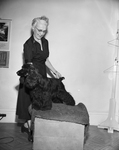 Dinah Girl, a 10-month old black cocker spaniel owned by Mrs. Myrtle Rhodes, one of the Fort Worth entries in the show of the Cocker Spaniel Club of South Texas at the Shamrock Hotel in Houston. Published in Fort Worth Star-Telegram morning edition January 17, 1954.