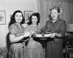 Mrs. J. C. Prior, center, honored by Mrs. T. N. Becker, left, and Miss Janet Ann Jackson, before her move to College Station. Published in Fort Worth Star-Telegram evening edition January 25, 1954.