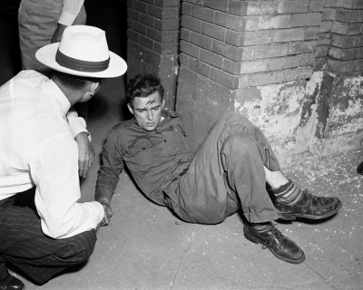 Richard A. Stickney, Fort Worth radio technician, sat morosely on a North Main sidewalk a few minutes after his car was involved in a traffic collision which killed Miss Keitha Elaine Gist. Mr. Stickney faced negligent homicide and driving while intoxicated charges. Published in the Fort Worth Star-Telegram morning edition, May 13, 1950.