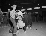 Charles Mashburn of the Everman 4-H Club poses his champion Hereford steer at the Tarrant County Junior Livestock Show. Published in Fort Worth Star-Telegram morning edition January 17, 1954.