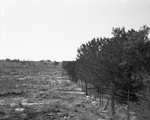 Ranch and Farm on the James F. Gray farm in San Saba County. A good "before and after" picture showing the kind of brush clearing job done by James F. Gray in San Saba County. The left side of the picture shows recently cleared pasture with good grass already started, and at right is the untouched cedar, oak and elm brush.
