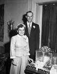 Mr. and Mrs. Lester Page, pictured here by the gift table at their wedding reception. Published in Fort Worth Star-Telegram morning edition January 24, 1954.