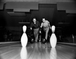 Two bowlers who will seek Class A titles in the City Bowling Association opening this week-end are Jim Sharpe, left, and Dennis Affeldt. Sharpe is averaging 184, Affeldt 180. Both are Major City League regulars. Published in Fort Worth Star-Telegram morning edition January 29, 1954.