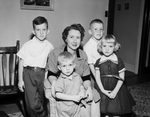 Mrs. M. O. Lewis, elected president of Gamma Phi beta Alumnae, shown here with her four children, John, 8, and James, 6, standing, left to right, Karen, 4; and Raymond, 2, in the foreground. Published in Fort Worth Star-Telegram morning edition January 26, 1954.