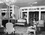 Old mirror paneling and furniture collected over a period of years create a feeling of warmth and hospitality in the living room of Mrs. J. W. Mitchell. Published in Fort Worth Star-Telegram evening edition January 25, 1954.