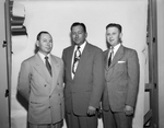 Pictured left to right are Joe M. Matlock, J. R. Hill and Lonnie Wooten. Matlock will teach public relations and Texas game laws, the two others pictured will be students. All are heading for A&M College. Published in Fort Worth Star-Telegram evening edition January 26, 1954.