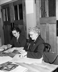 Shown here, left to right, are Mrs. C. R. Albrecht and Mrs. Robert Page, election judges. They assisted voter at Amon Carter Riverside High School with a $15,000,000 water and sewer revenue bond election. Published in Fort Worth Star-Telegram evening edition January 26, 1954.