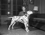 Champion Cocky Chap of Four-In-Hand Kennels, a Dalmatian owned by Dr. and Mrs. Holland T. Jackson, heads the Jackson's Moon-Tide Kennels. Archie, the dog's kennel name, was imported from England. Published in Fort Worth Star-Telegram evening edition January 28, 1954.