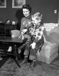 Shown here is Kenneth (Sparky) Peel and his mother, Mrs. William V. Peel, counting savings to get ready for the Mothers' March for March of Dimes in Fort Worth. Published in Fort Worth Star-Telegram morning edition January 28, 1954.