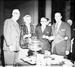 Gathered around the coffee urn after a Fort Worth Children's Museum directors' meeting are, left to right, J. Lee Johnson Jr., president; Miss Ella J. Smith, secretary; E. G. Parker, treasurer, and W. A. Landreth, vice president. Published in Fort Worth Star-Telegram morning edition January 29, 1954.