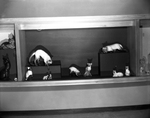 A group of lifelike Siamese cats, set against black to bring out their characteristic colors, is a part of the cat collection of the late Mrs. Ferne Whiteman Smith now on display at the Fort Worth Children's Museum. Published in Fort Worth Star-Telegram morning edition January 31, 1954.