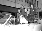 Even the dog seems to be enjoying the colorful event. In auto, left to right, are Mrs. Grant A. Black of Carswell Air Force Base, Carol Blackerby, 5, Mrs. A. P. Swanson of 3967 Alamo, Mike Jones, 5, Ronnie Runion, 5. The dog Buddie belongs to Mrs. Swanson. Published in Fort Worth Star-Telegram morning edition January 30, 1954.