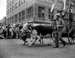 At the Stock show parade a team of oxen plod along main in the third picture to furnish scene from the Old West. Published in Fort Worth Star-Telegram morning edition January 30, 1954.