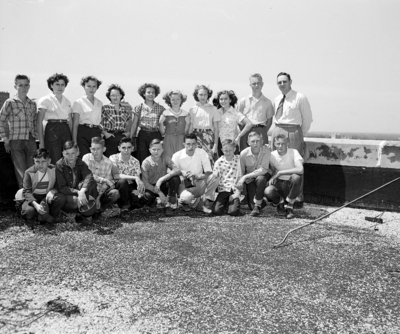 Eighteen pupils from the seventh and eight grades of Sunset Consolidated School in Knox County "stretched things a bit" and saw the sight in Fort Worth. The students were accompanied by Hannaford and Mrs. Moody Johnson. The pupils were Tommy Walling, president of the seventh grade; Mary Maude Hannaford, president of eight grade; Minden Hannaford, Charles Yost, Donald Hill, Jimmy Morgan, Larry Lain, Jake Hardin, Claude Hill, Wayne Butler, Tommy Catt, Shirley McAfee, Corinne Urbanezyd, Lois Michaels, Jonnye Matthews, Nell Johnson, Pat Walker and Roy Voyles. The sightseeing trip was arranged in Fort Worth by J. CC. Griffith, vice president and treasurer of W. C. Stripling Company. Published in Fort Worth Star-Telegram morning edition May 14, 1950.