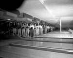 Bowlers on the first shift in the annual city tournament pause to hear instructions before starting competition at B&R Bowlanes. A couple of minutes after this, the establishment was filled with thunder as the pins started flying. The tournament will last three week-ends. Published in Fort Worth Star-Telegram morning edition January 3, 1954.