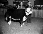 The grand champion steer of the Junior Livestock Show at the Southwestern Exposition and Fat Stock Show, was this heavyweight Hereford, Henke's Pride. The grand champion was shown by Bobby Zane Egger, Goldthwaite 4-H Club boy. With young Egger is Dean W. L. Stangel, superintendent of the steer show. Published in Fort Worth Star-Telegram evening edition January 30, 1954.