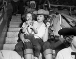 Miss Pat Langford of Longview, Texas Christian University freshman, and a little friend, Mary Frances Pryor, 5, daughter of Mr. and Mrs. E. J. Pryor of Longview, enjoy a bit of refreshment during the rodeo. Published in Fort Worth Star-Telegram morning edition February 1, 1954.