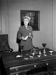 Mrs. F. P. Gary, who gave a program on French enamels and cloisonne at the Woman's Club, is pictured with some of the pieces she used to illustrate the talk. Published in Fort Worth Star-Telegram morning edition February 2, 1954.