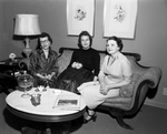 Mrs. Williams B. Lucas, center, former resident of Chattanooga, Tennessee, was honored at a reception given at the home of Mrs. Robert Naylor, right, 4001 Ranier Ct., by the Baptist Minister's Wives Club, of which Mrs. Charles McLaughlin, left, is president. Mrs. Lucas is wife of the new director of education for the Tarrant County Baptists. Published in Fort Worth Star-Telegram morning edition February 2, 1954.