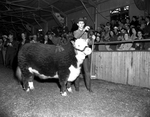 Open Class Hereford steer champion of the Stock Show was this senior calf shown by Billy Bridgford, 16, Colorado City 4-H Club boy. Published in Fort Worth Star-Telegram evening edition February 1, 1954.