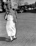 Margaret Priest, the stylish stout temptress, hides her allure from the photographer as appears to post bond on a robbery charge. She was less alert when brought into court two years ago. Published in Fort Worth Star-Telegram morning edition February 3, 1954.