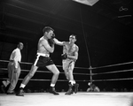 John White, right, lands right to Gene Slavik's head in open middleweight finals of Dallas Golden Gloves. Published in Fort Worth Star-Telegram evening February 03, 1954.