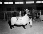 Harrison Davis of Dorchester showed his third champion in two days, the champion Suffolk ewe, which topped the aged ewe class. Published in Fort Worth Star-Telegram morning edition February 4, 1954.