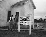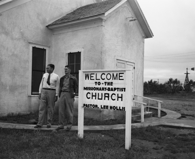 Reverend Lee Hollis, left, and Millard Smith, retired Baptist minister and currently a grocer, look over a vacant lot next door to their church in Girard. It is where they'll build a new church if their dreams of oil riches come true. Published in Fort Worth Star-Telegram morning edition June 4, 1950.