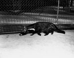 A palm civet cat, from whose glands perfume can be made, explores his Forest Park Zoo cage after arrival from Africa. Published in Fort Worth Star-Telegram morning edition February 6, 1954.