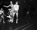 TWC's Don Bice (11) and Jerry Cook of St. Mary's go after loose ball at Recreation Building Friday night. Rams won game, 89-73. Published in Fort Worth Star-Telegram morning edition February 6, 1954.