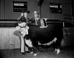 The reserve grand champion steer of the stock show was sold for $ 3,500. Amon Carter Jr., right, purchased the Hereford for the Amon G. Carter Foundation to be donated to the Lena Pope Orphans Home. Owner Billy Bruce Bridgford of Colorado City also is known with the 1,050-pound prize winner. Published in Fort Worth Star-Telegram morning edition February 8, 1954.