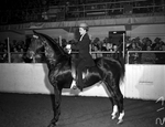 Zelpha Guy Corkern of New Orleans, Louisiana, riding Fairmount, won the three-gaited saddle $300 juvenile stake at the horse of the Stock Show in the field of the 17 entries. Published in Fort Worth Star-Telegram morning edition February 7, 1954.