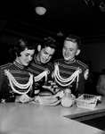 Stopping by the hamburger-hot dog stand en route to the Southwestern Exposition and Fat Stock Show rodeo in Will Rogers Memorial Coliseum are these Weatherford High School Band members. They are from left to right, Mary O'Kelley, Glenn Porterfield and Charles MacNelly. Published in Fort Worth Star-Telegram morning edition February 8, 1954.