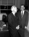 Cecil Morgan, left, member of the State Board of Education, talks with Joe P. Moore, superintendent of Fort Worth schools, prior to dedication ceremonies at Wycliff Elementary School. Published in Fort Worth Star-Telegram morning edition February 10, 1954.