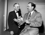 Jerry R. Holleman, right, of Austin, executive secretary of the Texas State Federation of Labor, received a book on Fort Worth and honorary citizenship from Mayor Pro Tem McKnight when Holleman was honored by the Fort Worth Trades Assembly. Published in Fort Worth Star-Telegram morning edition February 12, 1954.