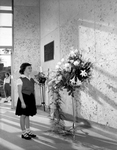 Linda Ruth Clements, 7, representing the children of Fort Worth, stands near a plaque honoring the 16 charter members of the Fort Worth Council of Administrative Women in Education who initiated the Children's Museum. A burning Candle, symbolic of the museum, was placed beneath the plaque during dedication ceremonies for the new museum. Linda is the daughter of Mr. and Mrs. Odelle Clements of 5201 Lovell. Published in Fort Worth Star-Telegram morning edition February 15, 1954.