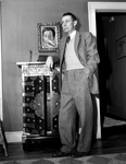 Dr. James F. Hooker brought this brass-bound chest back from Korea, where he was stationed for 3 months. The brass motifs are in the shape of a bat- Korean symbol of good luck. Published in Fort Worth Star-Telegram evening edition February 16, 1954.