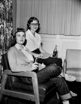 Two competitors in the Texas Open table tennis tournament at the YMCA were Myrla Manning of Oklahoma University student, and Sharlene Goltzman, right, of Corpus Christi, a student at the University of Texas. Published in Fort Worth Star-Telegram morning edition February 14, 1954.