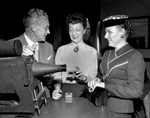 Fort Worth Art Association Director Dan Defenbacher, left, Mrs. Minna Citron, New York painter and printmaker, and Mrs. Louis A. Griffith, George Clark Elementary School art teacher, are shown here discussing art slides Mrs. Citron used in art lectures at the Public Library gallery. Published in Fort Worth Star-Telegram morning edition February 15, 1954.