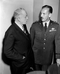 The Crusade for Freedom's major weapon for peace, Radio Free Europe, was discussed at the Fort Worth Club by Thomas D'Arcy Brophy of New York, left, and Lt. Gen. Laurence S. Kuter, commander of the Air University of the Air Force. They met with sponsors for Fort Worth's participation in the crusade. Published in Fort Worth Star-Telegram morning edition February 17, 1954.
