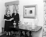 Mrs. S. F. Towles, left, and Mrs. Palmer Hogan are pictured with examples of their antique glass collections, which they will exhibit at the Woman's Club antiques department collections and hobby show. Published in Fort Worth Star-Telegram evening edition February 16, 1954.