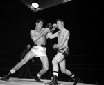 Reagan Turmar, left, of Tyler and Billy Bruto of Austin trade punches at the State Golden Gloves. Bruton won decision. Published in Fort Worth Star-Telegram evening February 18, 1954.