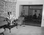 Two members talk over coffee cups in the other picture, which shows in the foreground one of the club's numerous, well-furnished reception and parlor rooms. All purchase and upkeep costs of the club come from Fort Worth AA members. Published in Fort Worth Star-Telegram evening edition, May 18, 1950.