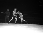 Lightweight Charles Aviles Of Corpus Christi lands stinging right to jaw of Brownwood's Charles Price during action in Star-Telegram's Golden Gloves. Aviles won decision. Published in Fort Worth Star-Telegram evening February 21, 1954.
