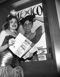 Miss Margaret Preston of Cleburne, queen of the 1953 Moslah Temple Shrine Circus, looks over travel folders for Mexico City and a week's vacation as guest of Moslah Temple. Published in Fort Worth Star-Telegram evening edition February 20, 1954.